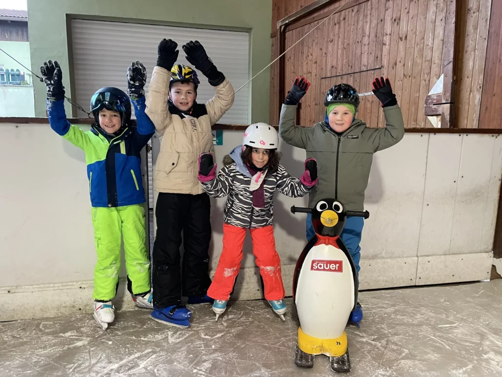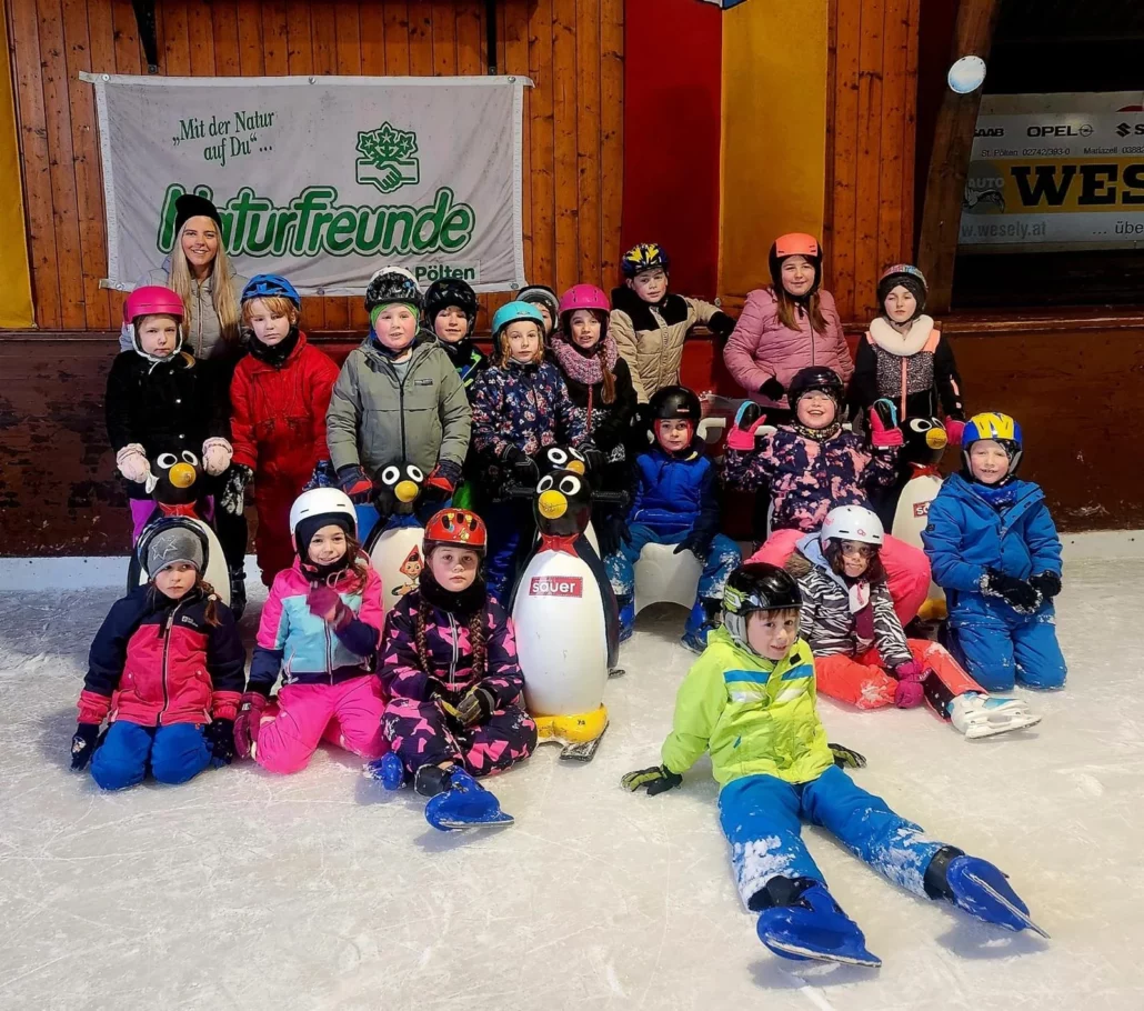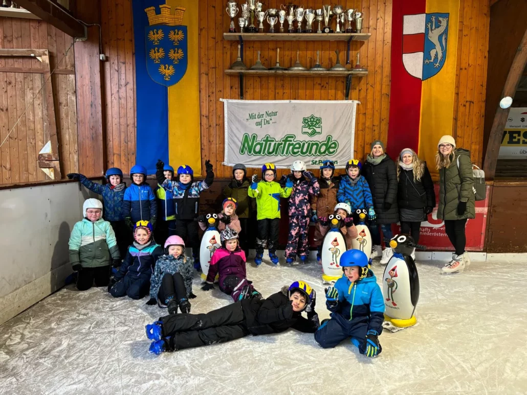 Am 13. Dezember 2024 fuhren die Klassen 2b und 2c der Volksschule Ober-Grafendorf mit dem Bus zur Eislaufhalle der Naturfreunde in St. Pölten. Nach der Ankunft wurden die Kinder mit Eislaufschuhen ausgestattet und durften auf dem Eis fahren. Einige Kinder waren schon sicher unterwegs, während andere anfangs noch Unterstützung brauchten. Nach einer kurzen Jausen-Pause fuhren die Kinder weiter, bevor sie mittags wieder in den Bus stiegen und zurück zur Schule fuhren. Der Ausflug war ein großer Erfolg und alle hatten viel Spaß.