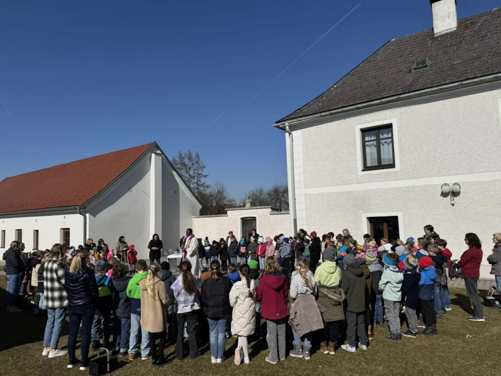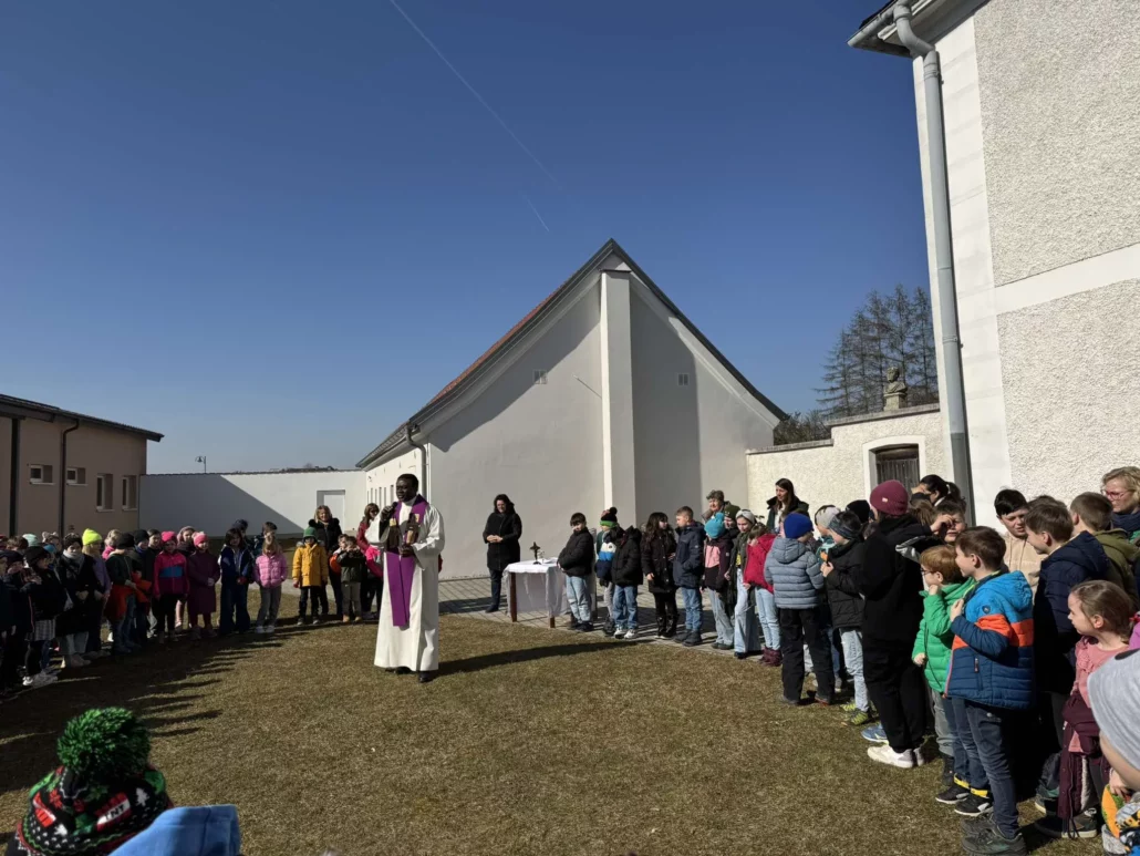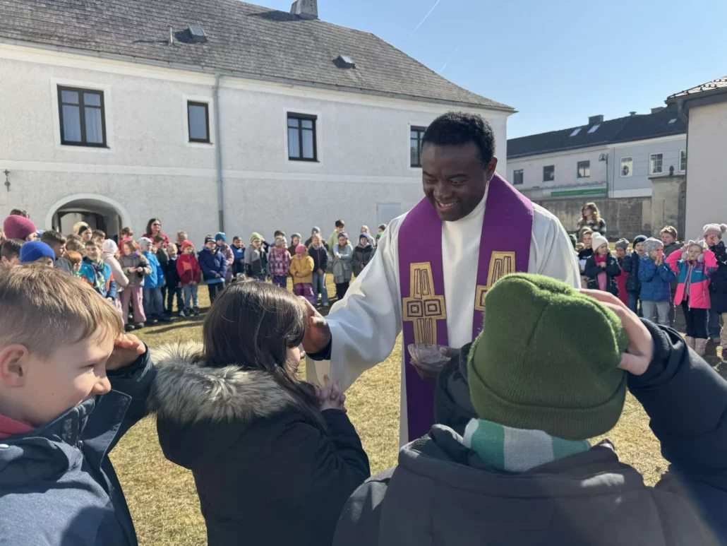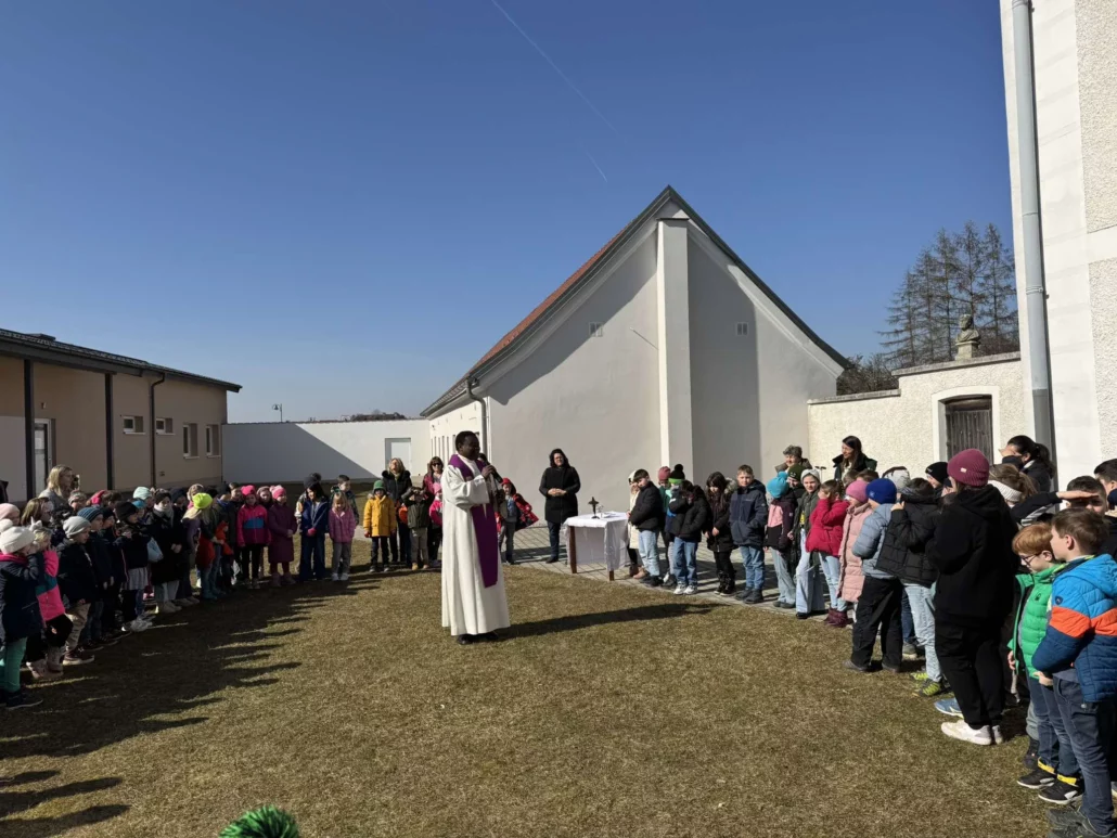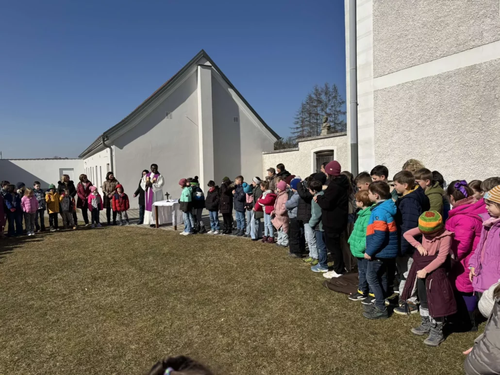 Am Aschermittwoch versammelten sich die SchülerInnen der Volksschule im Pfarrhof, um das Aschenkreuz zu empfangen. In einer feierlichen Zeremonie erklärte unser Herr Pfarrer Emeka die Bedeutung dieses Symbols: Es erinnert an die Vergänglichkeit des Lebens und lädt zur Besinnung und Umkehr ein.
