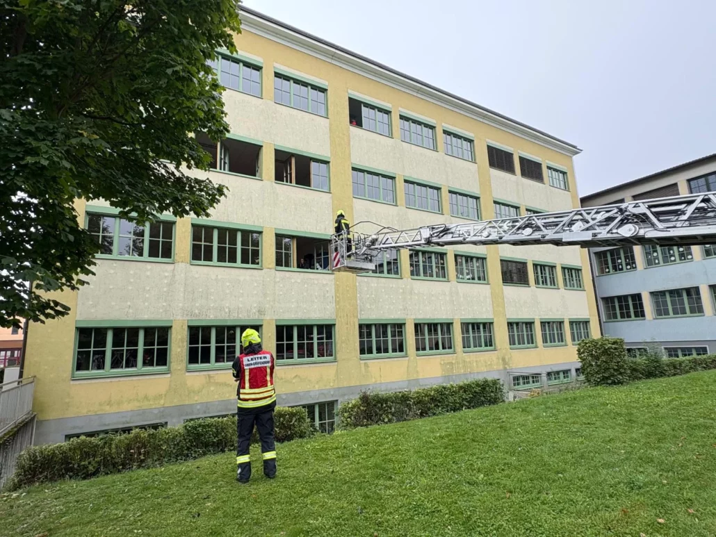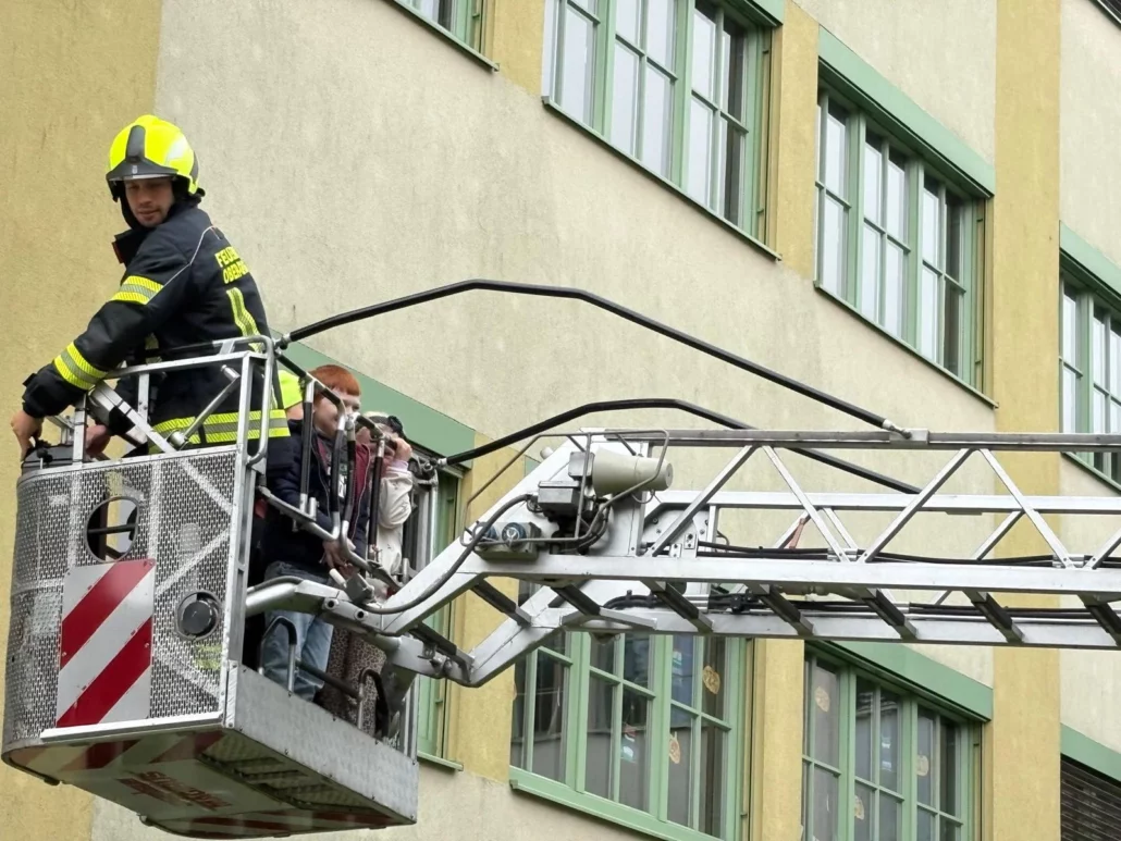 Das ganze Nord-Stiegenhaus war erfüllt von dichtem Rauch und in einigen Klassen und auch auf der Toilette waren mehrere SchülerInnen eingeschlossen, denn ihr Fluchtweg war durch dichten Rauch vernebelt und nicht mehr benützbar.
