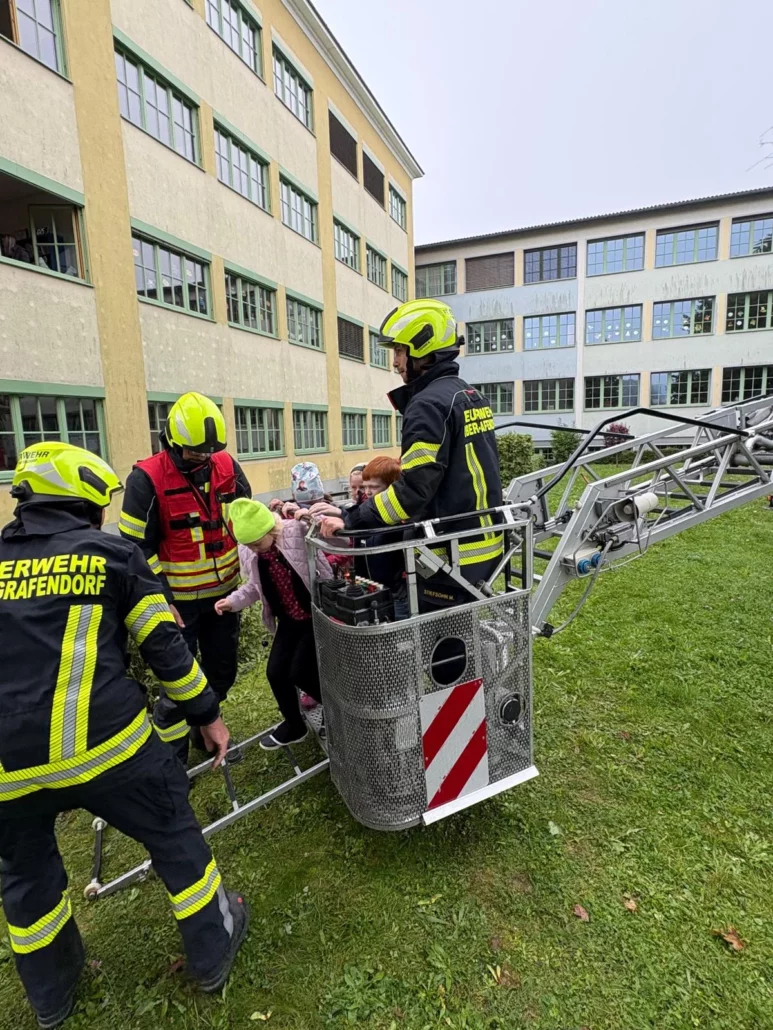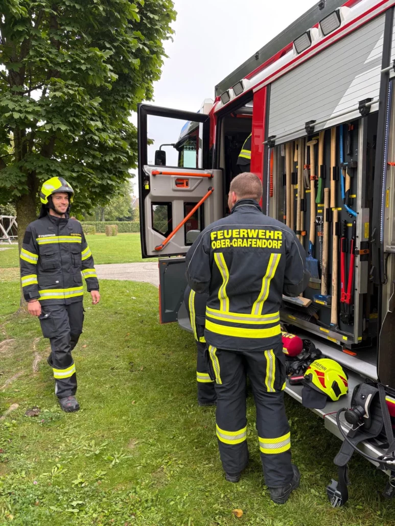 Am Freitag, den 03.10.2025 rückten die freiwillige Feuerwehr von Ober-Grafendorf, Weinburg und St. Margarethen mit vielen Einsatzfahrzeugen, Blaulicht und der Drehleiter an. Auch die Polizei und die Rettung waren vor Ort. Zum Glück war es kein echter Notfall, sondern es fand die alle zwei Jahre groß angelegte verpflichtende Feuerwehrübung statt.
