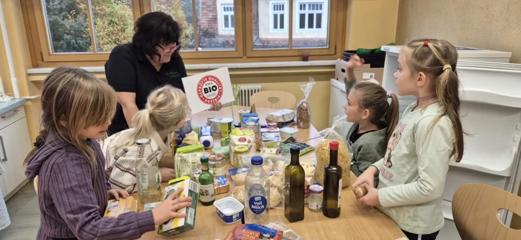 Weiters wurde gemeinsam auf verschiedenen Lebensmittelverpackungen das AMA-Gütesiegel gesucht und besprochen, welche Bedeutung dieses Zeichen für Qualität und Herkunft regionaler Produkte hat.