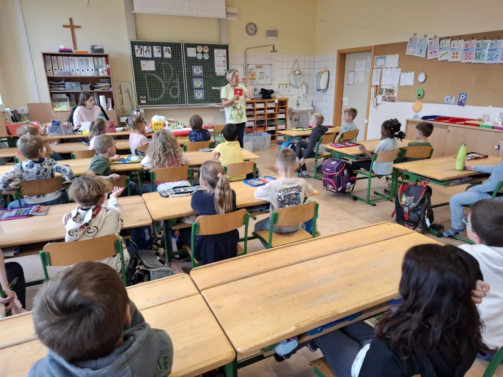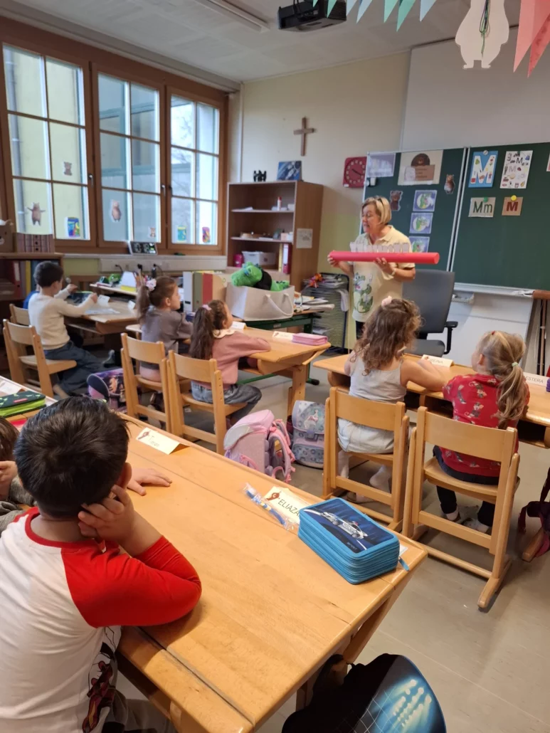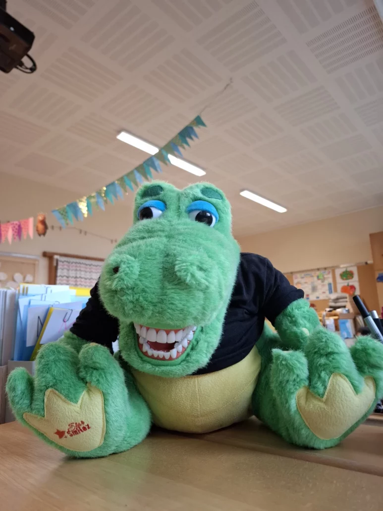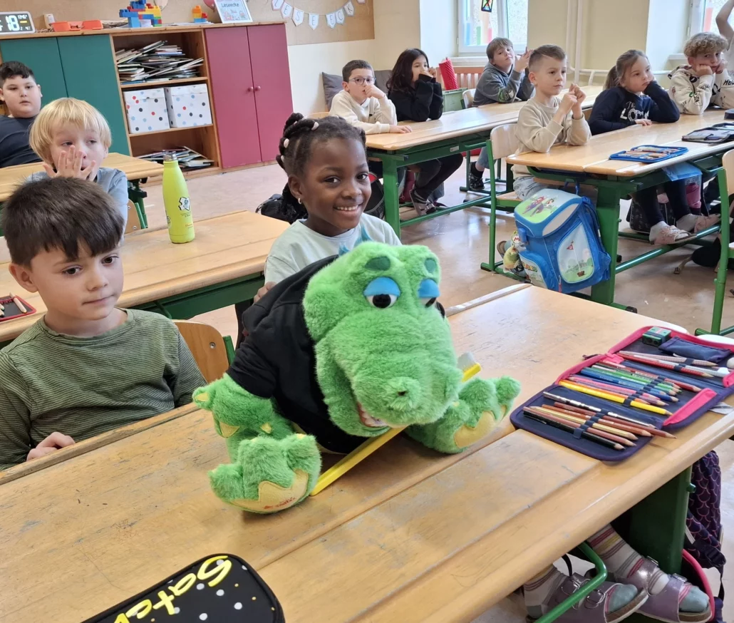 Die Kinder der Volksschule hatten im November Besuch vom Kroko, dem beliebten Maskottchen des Apollonia-Projekts! 🐊.