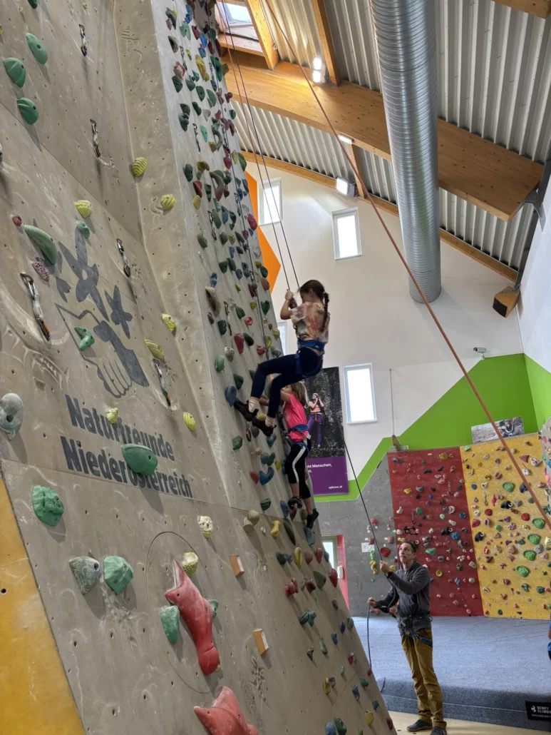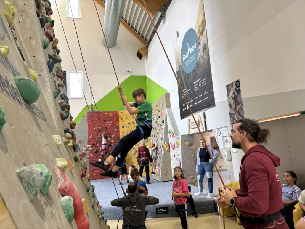 Schnell stellte sich heraus, dass Klettern nicht nur Mut, sondern auch Teamwork und Vertrauen erfordert. Die Schülerinnen und Schüler feuerten sich gegenseitig an, jubelten über jeden erreichten Griff und waren stolz auf ihre Erfolge.