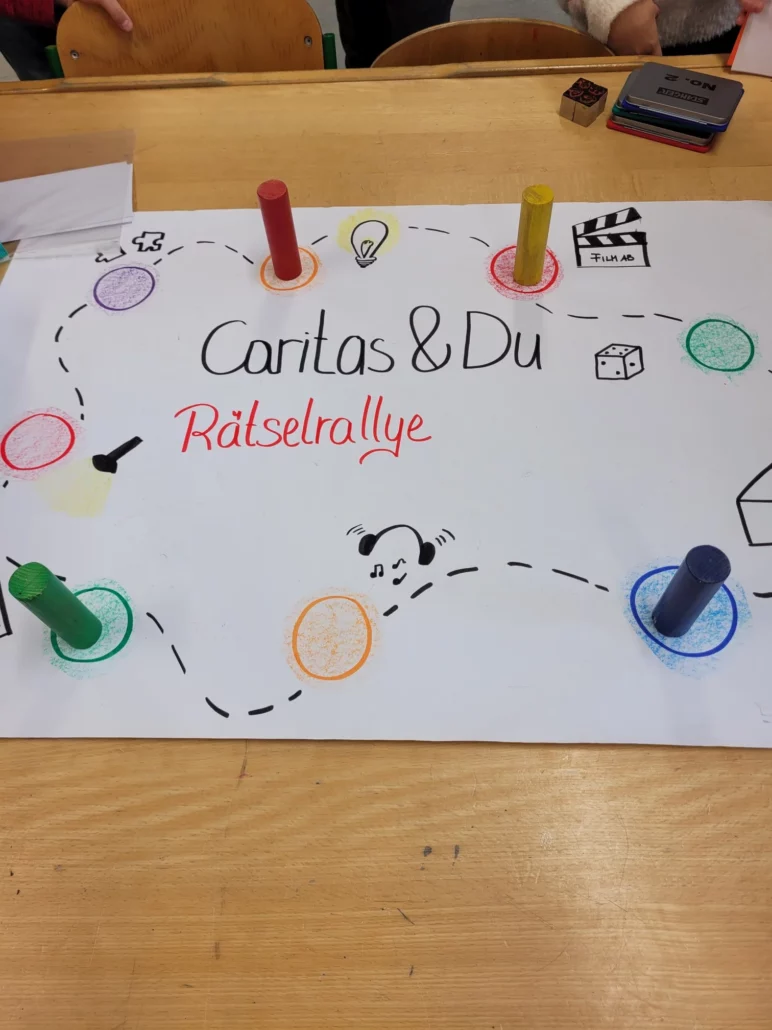 Bei einem Workshop der Caritas lernten Kinder auf kreative Weise, was Nächstenliebe bedeutet. In Form einer spannenden Rätselrallye entdeckten sie, wie die Caritas Menschen in Not unterstützt – von Hilfe für Familien bis zur Obdachlosenhilfe.