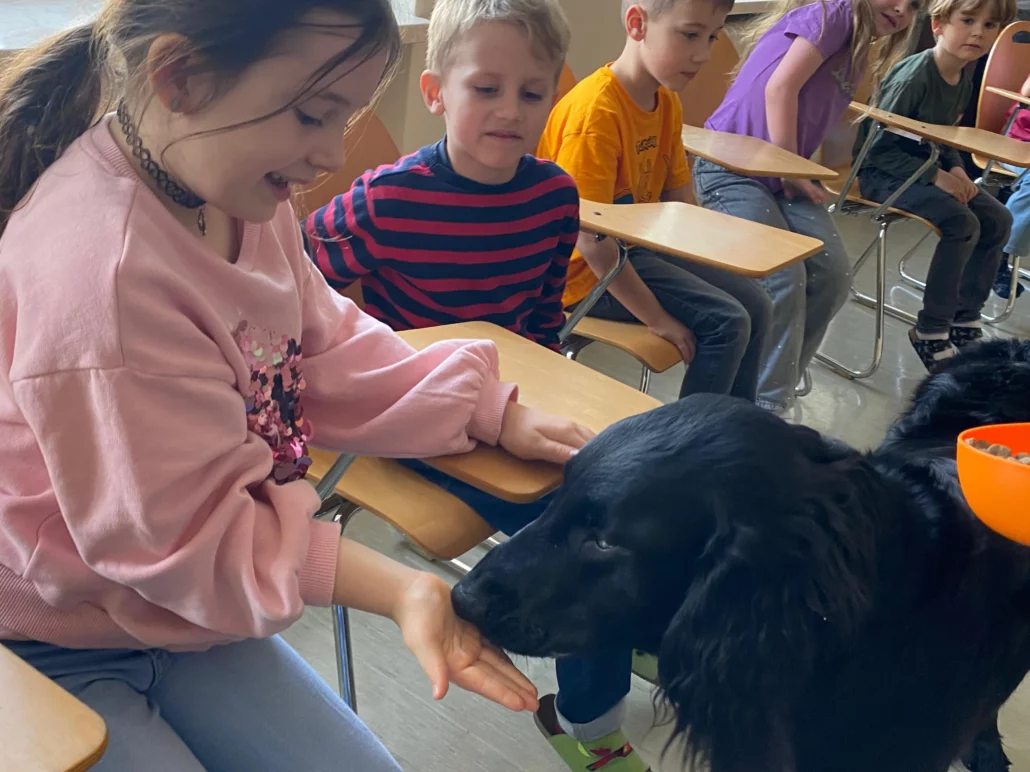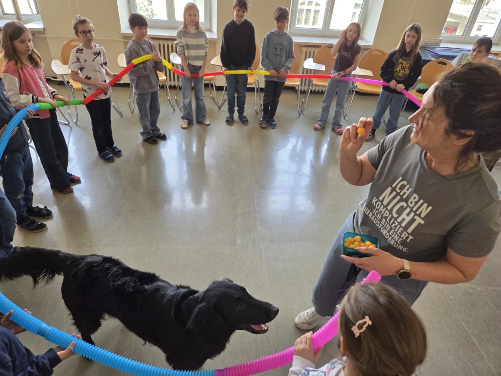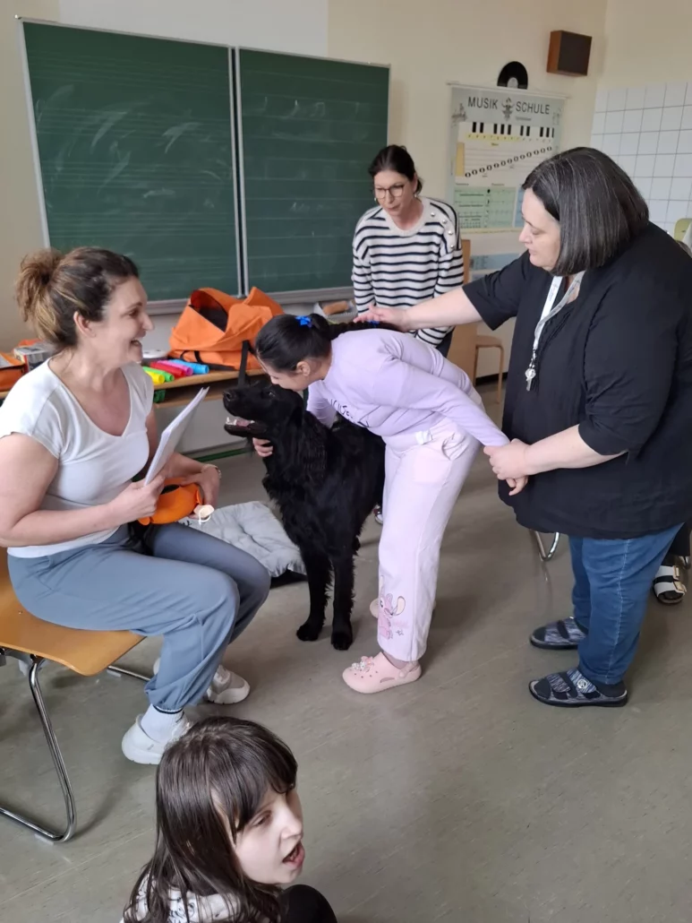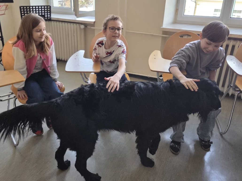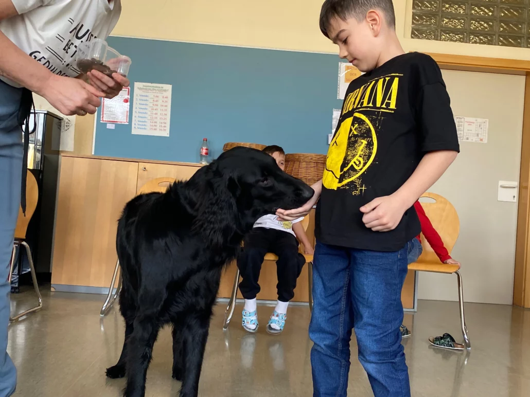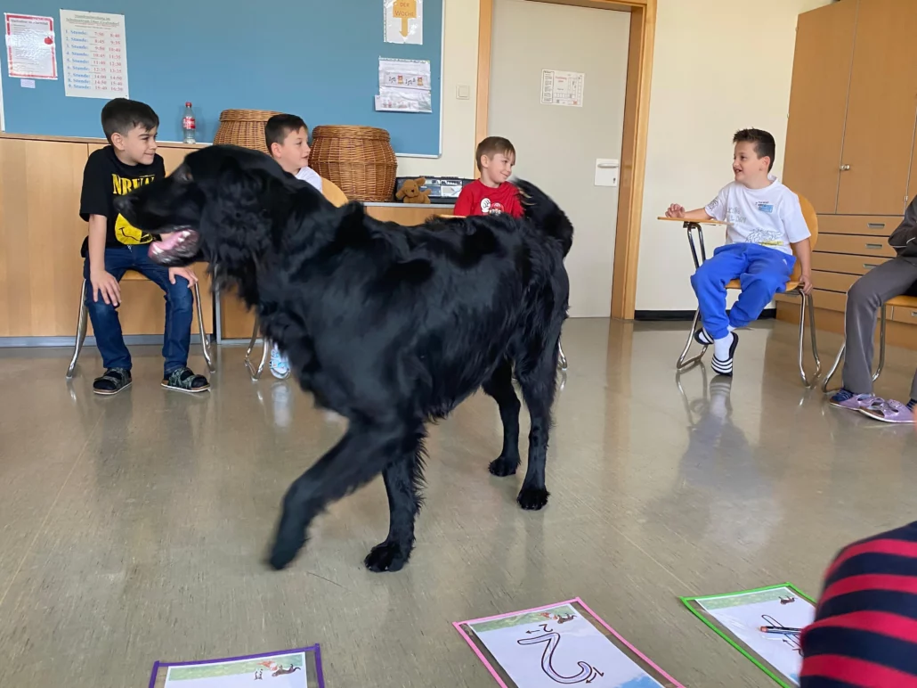 Die Kinder hatten dabei die wunderbare Gelegenheit, diesen außergewöhnlichen Therapiehund kennenzulernen, Zeit mit ihm zu verbringen und viel über den Umgang mit Hunden zu lernen. Mit seiner ruhigen und freundlichen Art hat Aragon schnell die Herzen aller Schülerinnen und Schüler erobert.